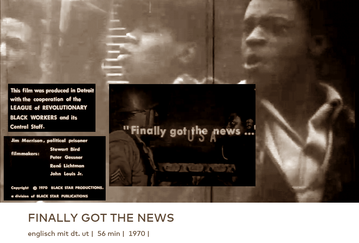 Finally got the News (1970) ![]() Ein Film von Rene Lichtman, Stewart Bird und Peter Gessner. Produziert in Zusammenarbeit mit League of Revolutionary Black Workers Deutsche UT: Christian Frings, Felix Klopotek, Malte Meyer und Peter Scheiffel ENGLISH ![]() Babylon Kino Rosa-Luxemburg-Str. 30, 10178 Berlin Mittwoch, 13. Februar 2019 um 19 Uhr in der Woche des Berlinale Film Festivals Eintritt 10,- Euro am Do 14.2.2019 um 19 Uhr Podiumsdiskussion mit Rene Lichtman, Darnell Stephen Summers, Dr. Nancy Larenas Ojeda und Victo Grossman. Veranstaltungsort: Sprechsaal, Marienstraße 26 - 10117 Berlin-Mitte https://www.sprechsaal.de Eintritt frei Flyer hier: http://bit.do/eHg8a Wir haben Dr. Rene Lichtman nach Berlin eingeladen, um den Film „Finally got the News“ zu präsentieren, ein Film, der die politische Arbeit der League of Revolutionary Black Workers in den 60er und 70er Jahren dokumentiert. Rene Lichtman wurde 1937 in Paris geboren, überlebte die Nazi-Okkupation und emigrierte zusammen mit seiner Mutter in die USA. Heute lebt Rene Lichtman in Detroit. „Finally got the News“ ist zeitlose politische Kinematographie, die bis heute relevant ist. Rene Lichtman hat als Überlebender des Holocaust, mit über 81 Jahren, eine einzigartige Perspektive auf Geschichte und Politik. Als einer der Regisseure und Kameramänner des Films war / ist er Augenzeuge des großen Aufruhrs und Umbruchs, der die seine Generation bestimmt hat. Er hat Geschichte zu erzählen. Darnell Stephen Summers, Vietnam-Veteran (Stop The WAR Brigade - VVAW / OSS) stellt Rene Lichtman vor. Stephen lernte Rene 1971 in Detroit kennen und wurde stark von dessen Arbeit und seinem Engagement für soziale Fragen beeinflusst. Als ehemaliges Mitglied des Black Workers Congress kannte D. Stephen Summers viele der im Film gezeigten Aktivisten persönlich und arbeitete mit ihnen zusammen. ![]() ![]() Rene Lichtman (links: mit seinen Eltern) ![]() In Detroit. Rene Lichtman am Mikrofon - Peter Gessner an der Kamera hinter Rene. ![]() Detroit Protest ![]() Mike Hamlin und General Baker Ein Film der League Of Revolutionary Black Workers über die Fabrikkämpfe in der Detroiter Autoindustrie der 60er Jahre. Der Titel des Films bezieht sich auf den Demo-Slogan "Finally Got The News How To Do - Endlich haben wir verstanden, was zu tun ist!" "Ein Klassiker! Anstelle der im Gleichschritt marschierenden, schwarzbemützten, Lederjacken tragenden Panther Gruppen in anderen Filmen, zeigt FINALLY eher normale Leute, die sehr wütend auf das System geworden dind. Ideologisch im besten Sinn: Es ist ein Film über Ideen und der eine ernsthafte Strategie für massenhaften Klassenkampf präsentiert... Er erzählt von einer bestimmten Zeit und bestimmten Erfahrungen in einer Form, die relevant bleiben wird,solange arbeitende Menschen keine Kontrolle über ihr Leben haben."—Dan Georgakas, für Cineaste Die deutschen Untertitel sind von Christian Frings, Felix Klopotek, Malte Meyer und Peter Scheiffele (2015 verstorben),die den Film anläßlich der 40 Jahrfeiern von 1968 gezeigt haben: "Auch wenn es heute gerne übersehen wird: 1968 als 'Jahr der Revolte' steht auch für das revolutionäre Aufbegehren gegen den Terror der Fabrik. So in Detroit, 'MotorCity USA' und 'Herz' der fordistischen Fabrikdespotie. Schwarze ArbeiterInnen kämpften gegen das Fließband und gegen rassistische Unterdrückung. Mit Marx und Fanon gegen die Sklaverei der Arbeit." (Schwarze Fabrikrevolten 1968) https://de.labournet.tv/video/6041/finally-got-news Veranstaltung organisiert von: Darnell Stephen Summers, Vietnam-Veteran & Coop Anti-War Cafe Berlin unterstützt von: Babylon Kino Berlin |